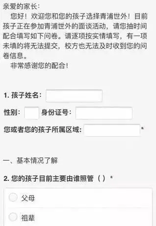 7日,上海青浦世外学校就“小学招生面谈调查问卷家长”一事致歉。