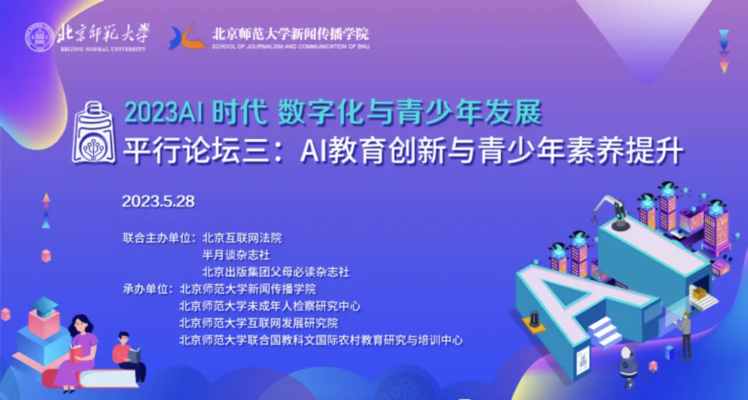 大会由北京互联网法院、半月谈杂志社、北京出版集团等联合主办,北京师范大学新闻传播学院、北京师范大学未成年人检察研究中心、北京师范大学互联网发展研究院和北京师范大学联合国教科文国际农村教育研究与培训中心共同承办。大会云集海内外近百名专家学者共同探讨青少年网络素养问题,从教育、法律、家庭等多维度分析当下互联网数字化对于青少年的影响,引发全行业的思考。