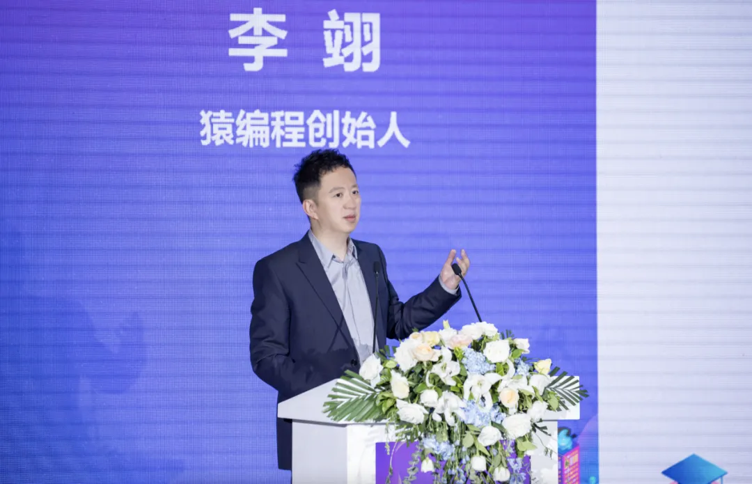 在大会“AI教育创新与青少年素养提升”分论坛上,猿编程创始人李翊分享了公司“培养人工智能时代下的科技少年”的产品定位以及具体的产品研发实践。其教育产品体系主要围绕“编程语言、计算思维、创造能力、未来视野”四个方面展开,持续探索人工智能科技与核心素养的深度融合和教育创新。