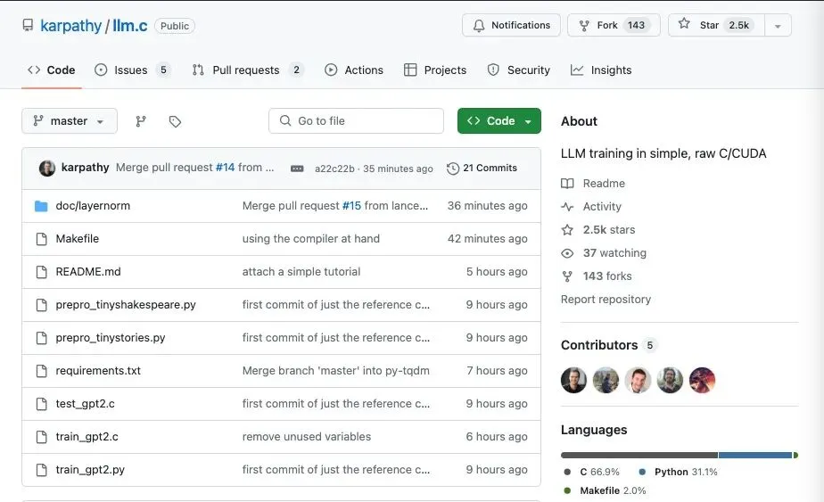Karpathy 以更简单、更原始的 C/CUDA 架构来做 LLM 的训练,其中还涉及算法优化、计算资源管理等多个方面。