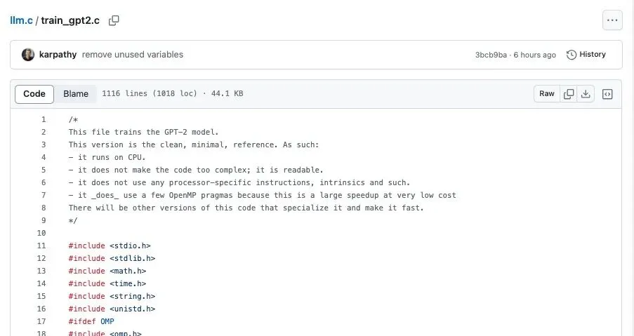 几个小时前,Andrej Karpathy 推出了一个名为 llm.c 的项目,旨在用纯 C 语言训练 LLM,这种方法的主要优势在于它显著减少了依赖库的体积——不再需要 245MB 的 PyTorch 和 107MB 的 cPython,这样可以使得模型训练过程更为轻量化和高效。该项目还可以立即编译和运行,并且可以与 PyTorch 的参考实现媲美。