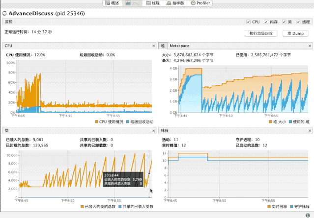 for (int i = 0; i < 1000000; i++) {//编译加载并且执行compileAndRun(i);//10000个回收一下if (i % 10000 == 0) {System.gc();}}//强制进行回收System.gc();System.out.println("休息10s");Thread.currentThread().sleep(10 * 1000);