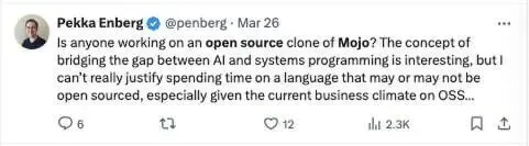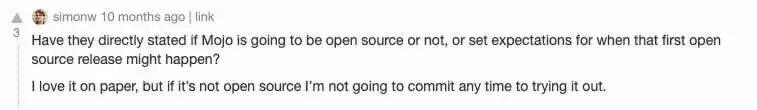 去年,Mojo 推出后,一些开发者对它的出现表现得非常兴奋,但当被问及开源日期时, Chris Lattner 在 Discord 上是这样说的:“如果我知道的话我会告诉你的。”于是在这一年左右的时间里,很多开发者一直处于观望和质疑的状态: