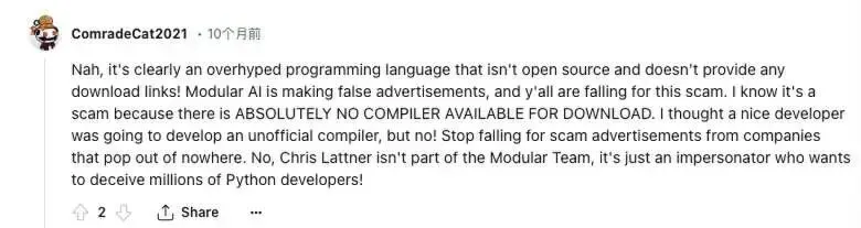 “它显然是一种被夸大的编程语言,它不是开源的!Chris Lattner 想要欺骗数百万 Python 开发人员!”