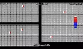 理解决策树原理的最好的办法就是玩Jezzball游戏。这是微软的一款经典游戏(见下图)。这个游戏的最终任务是在一个有移动墙壁的房间里,通过建造墙壁来尽可能地将房间分成尽量大的,没有小球的空间。