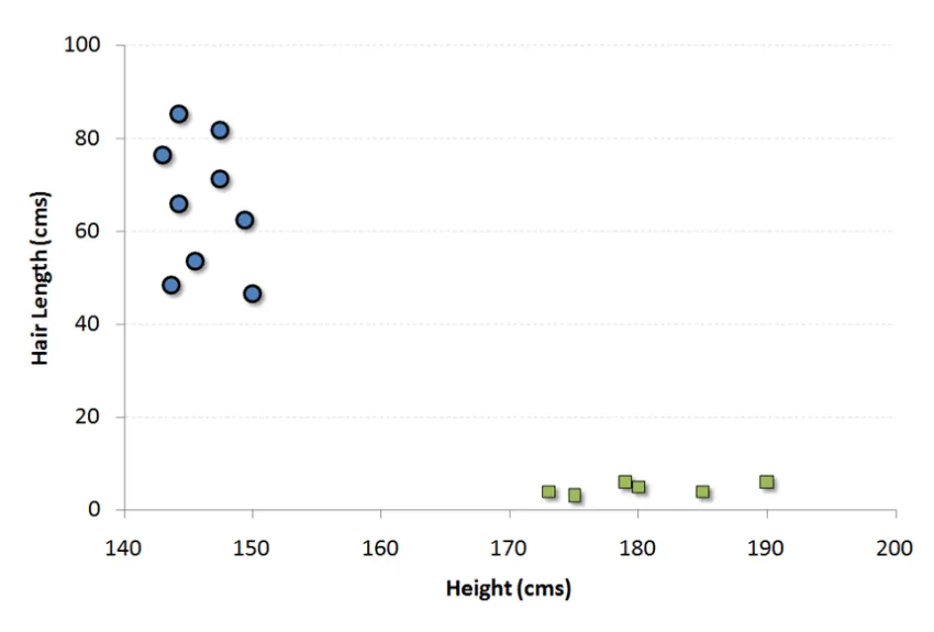 这是一个分类算法。在这个算法中我们将每一个数据作为一个点在一个n维空间上作图(n是特征数),每一个特征值就代表对应坐标值的大小。比如说我们有两个特征:一个人的身高和发长。我们可以将这两个变量在一个二维空间上作图,图上的每个点都有两个坐标值(这些坐标轴也叫做支持向量)。