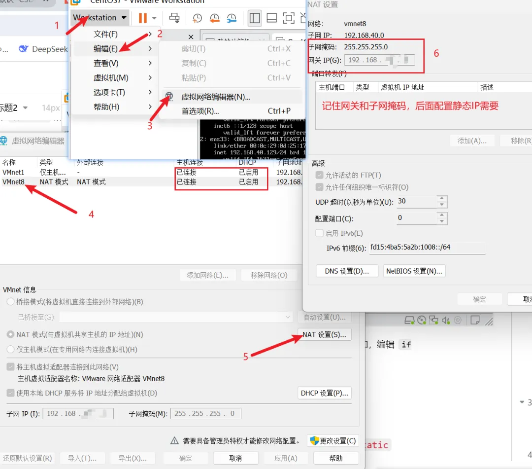 IPADDR、NETMASK、GATEWAY和DNS 的值和网络环境匹配,不然会出现各种问题,要好好检查修改的配置文件是否有配置成功。如果在配置过程中遇到问题,可以检查日志文件:/var/log/messages。