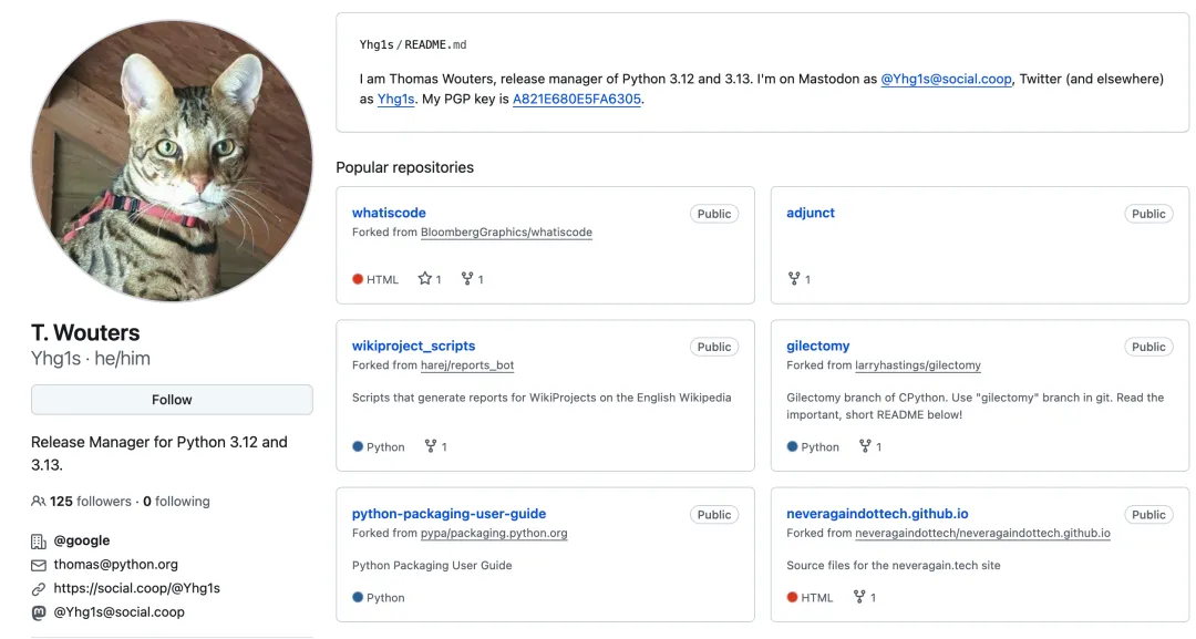 Thomas Wouters 负责了 Python 3.12 和 3.13 的整体发版流程,对于此前备受关注的 no-GIL 特性(no-GIL Python,启动!),他承担了对外沟通的大量工作。