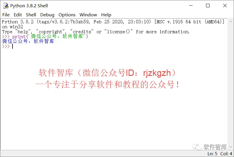 9.打开Python 3.8.2 Shell软件,英文版界面如下: