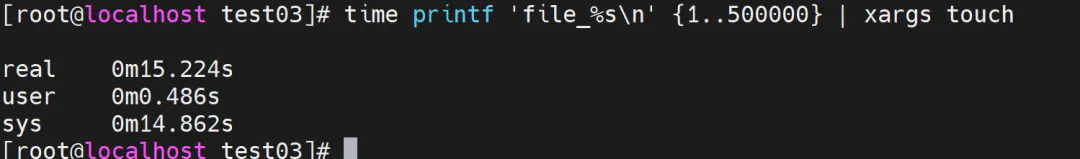 time printf 'file_%s\n' {1..500000} | xargs touch