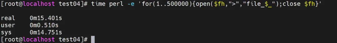 time perl -e 'for(1..500000){open($fh,">","file_$_");close $fh}'