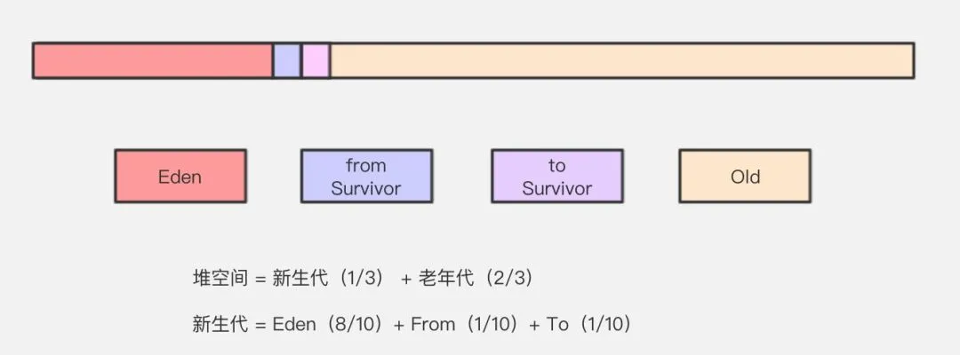 复制算法(Copying)是在标记清除算法上演化而来,解决标记清除算法的内存碎片问题。它将可用内存按容量划分为大小相等的两块,每次只使用其中的一块。当这一块的内存用完了,就将还存活着的对象复制到另外一块上面,然后再把已使用过的内存空间一次清理掉。保证了内存的连续可用,内存分配时也就不用考虑内存碎片等复杂情况,逻辑清晰,运行高效。上面的图很清楚,也很明显的暴露了另一个问题,合着我这140平的大三房,只能当70平米的小两房来使?代价实在太高。标记整理算法(Mark-Compact)标记过程仍然与标记 --- 清除算法一样,但后续步骤不是直接对可回收对象进行清理,而是让所有存活的对象都向一端移动,再清理掉端边界以外的内存区域。标记整理算法一方面在标记-清除算法上做了升级,解决了内存碎片的问题,也规避了复制算法只能利用一半内存区域的弊端。看起来很美好,但从上图可以看到,它对内存变动更频繁,需要整理所有存活对象的引用地址,在效率上比复制算法要差很多。分代收集算法分代收集算法(Generational Collection)严格来说并不是一种思想或理论,而是融合上述3种基础的算法思想,而产生的针对不同情况所采用不同算法的一套组合拳。对象存活周期的不同将内存划分为几块。一般是把 Java 堆分为新生代和老年代,这样就可以根据各个年代的特点采用最适当的收集算法。在新生代中,每次垃圾收集时都发现有大批对象死去,只有少量存活,那就选用复制算法,只需要付出少量存活对象的复制成本就可以完成收集。而老年代中因为对象存活率高、没有额外空间对它进行分配担保,就必须使用标记-清理或者标记——整理算法来进行回收。so,另一个问题来了,那内存区域到底被分为哪几块,每一块又有什么特别适合什么算法呢?Java 堆(Java Heap)是JVM所管理的内存中最大的一块,堆又是垃圾收集器管理的主要区域,这里我们主要分析一下 Java 堆的结构。Java 堆主要分为2个区域-年轻代与老年代,其中年轻代又分 Eden 区和 Survivor 区,其中 Survivor 区又分 From 和 To 2个区。可能这时候大家会有疑问,为什么需要 Survivor 区,为什么Survivor 还要分2个区。不着急,我们从头到尾,看看对象到底是怎么来的,而它又是怎么没的。IBM 公司的专业研究表明,有将近98%的对象是朝生夕死,所以针对这一现状,大多数情况下,对象会在新生代 Eden 区中进行分配,当 Eden 区没有足够空间进行分配时,虚拟机会发起一次 Minor GC,Minor GC 相比 Major GC 更频繁,回收速度也更快。通过 Minor GC 之后,Eden 会被清空,Eden 区中绝大部分对象会被回收,而那些无需回收的存活对象,将会进到 Survivor 的 From 区(若 From 区不够,则直接进入 Old 区)。Survivor 区相当于是 Eden 区和 Old 区的一个缓冲,类似于我们交通灯中的黄灯。Survivor 又分为2个区,一个是 From 区,一个是 To 区。每次执行 Minor GC,会将 Eden 区和 From 存活的对象放到 Survivor 的 To 区(如果 To 区不够,则直接进入 Old 区)。不就是新生代到老年代么,直接 Eden 到 Old 不好了吗,为啥要这么复杂。想想如果没有 Survivor 区,Eden 区每进行一次 Minor GC,存活的对象就会被送到老年代,老年代很快就会被填满。而有很多对象虽然一次 Minor GC 没有消灭,但其实也并不会蹦跶多久,或许第二次,第三次就需要被清除。这时候移入老年区,很明显不是一个明智的决定。所以,Survivor 的存在意义就是减少被送到老年代的对象,进而减少 Major GC 的发生。Survivor 的预筛选保证,只有经历16次 Minor GC 还能在新生代中存活的对象,才会被送到老年代。设置两个 Survivor 区最大的好处就是解决内存碎片化。我们先假设一下,Survivor 如果只有一个区域会怎样。Minor GC 执行后,Eden 区被清空了,存活的对象放到了 Survivor 区,而之前 Survivor 区中的对象,可能也有一些是需要被清除的。问题来了,这时候我们怎么清除它们?在这种场景下,我们只能标记清除,而我们知道标记清除最大的问题就是内存碎片,在新生代这种经常会消亡的区域,采用标记清除必然会让内存产生严重的碎片化。因为 Survivor 有2个区域,所以每次 Minor GC,会将之前 Eden 区和 From 区中的存活对象复制到 To 区域。第二次 Minor GC 时,From 与 To 职责兑换,这时候会将 Eden 区和 To 区中的存活对象再复制到 From 区域,以此反复。这种机制最大的好处就是,整个过程中,永远有一个 Survivor space 是空的,另一个非空的 Survivor space 是无碎片的。那么,Survivor 为什么不分更多块呢?比方说分成三个、四个、五个?显然,如果 Survivor 区再细分下去,每一块的空间就会比较小,容易导致 Survivor 区满,两块 Survivor 区可能是经过权衡之后的最佳方案。老年代占据着2/3的堆内存空间,只有在 Major GC 的时候才会进行清理,每次 GC 都会触发“Stop-The-World”。内存越大,STW 的时间也越长,所以内存也不仅仅是越大就越好。由于复制算法在对象存活率较高的老年代会进行很多次的复制操作,效率很低,所以老年代这里采用的是标记——整理算法。除了上述所说,在内存担保机制下,无法安置的对象会直接进到老年代,以下几种情况也会进入老年代。大对象指需要大量连续内存空间的对象,这部分对象不管是不是“朝生夕死”,都会直接进到老年代。这样做主要是为了避免在 Eden 区及2个 Survivor 区之间发生大量的内存复制。当你的系统有非常多“朝生夕死”的大对象时,得注意了。虚拟