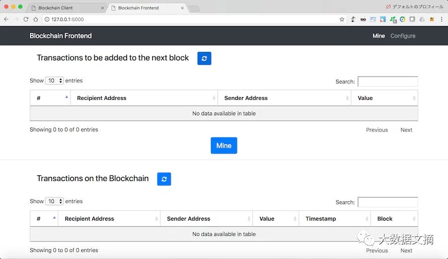 你可以从终端启动区块链节点,通过进入blockchain文件夹,并输入命令:python blockchain_client.py或python blockchain_client.py -p <PORT NUMBER> 。如果你未指定端口号,则会默认端口号为5000。在浏览器中打开http://localhost:<PORT NUMBER>可以看到区块链前端展示界面。