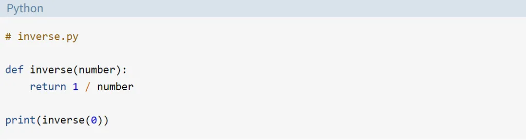 举例来说,你可以使用 inverse() 来计算一个数的倒数。因为 0 没有倒数,所以在运行下列代码时会抛出一个错误。