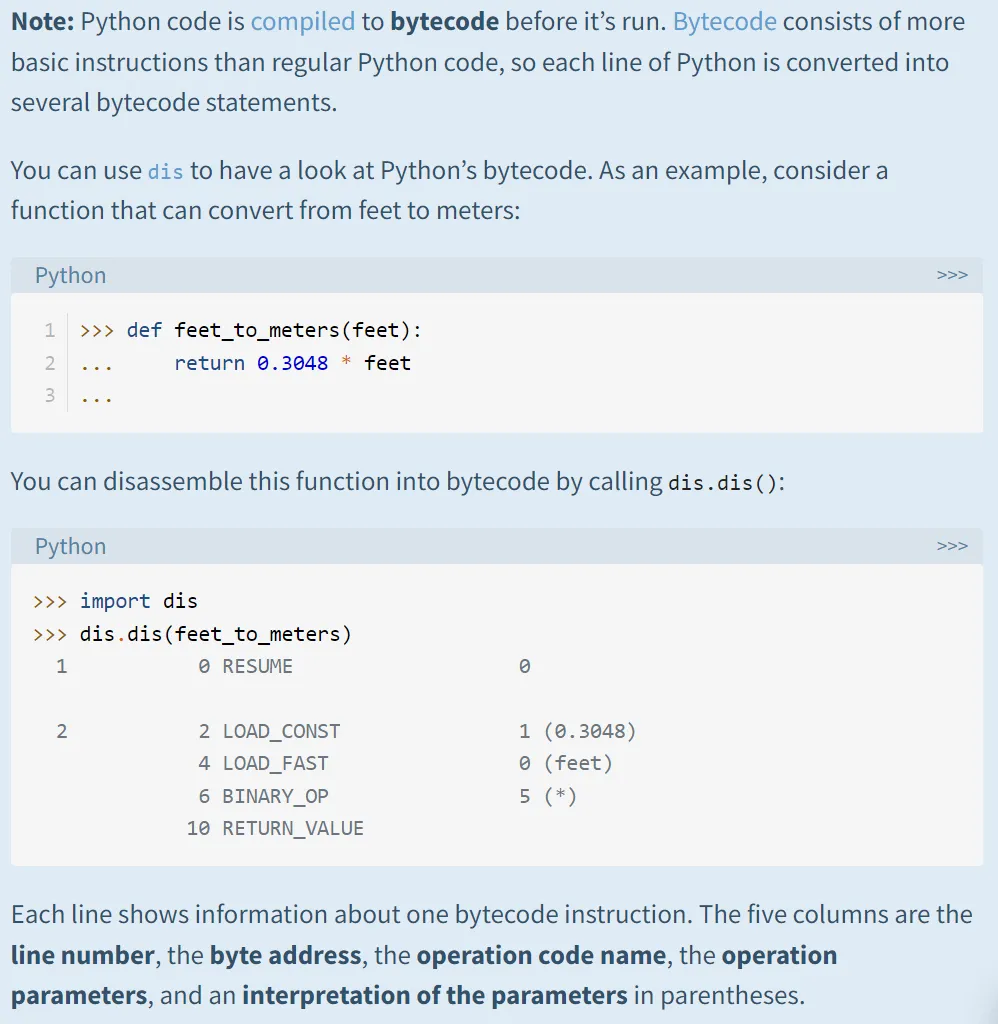 注意嵌入在 traceback 中的 ^ 和~ 符号,它们指向导致错误的代码。与此前的 tracebacks 一样,你应该从底层开始,然后逐步向上。这种操作对发现错误非常有用,但如果代码过于复杂,带注释的 tracebacks 会更好。Python 以速度慢著称,例如在 Python 中,常规循环比 C 中的类似循环慢几个数量级。Python 官方正在着手改进这一缺陷。2020 年秋,Mark Shannon 提出了关于 Python 的几个性能改进。这个提议被称为香农计划 (Shannon Plan),他们希望通过几个版本的更新将 Python 的速度提高 5 倍。不久之后微软正式加入该计划,该公司正在支持包括 Mark Shannon、Guido van Rossum 在内的开发人员,致力于「Faster CPython」项目的研究。「Faster CPython」项目中的一个重要提案是 PEP 659,在此基础上,Python 3.11 有了许多改进。PEP 659 描述了一种「specializing adaptive interpreter」。主要思想是通过优化经常执行的操作来加快代码运行速度, 这类似于 JIT(just-in-time)编译。只是它不影响编译,相反,Python 的字节码是动态调整或可更改的。