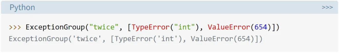 异常的内部表示在 Python 3.11 中有所不同。异常对象更轻量级,并且异常处理发生了变化。因此只要不触发 except 字句,try … except 块中的开销就越小。所谓的零成本异常受到了 C++ 和 Java 等其他语言的启发。当你的源代码被编译为字节码时,编译器创建跳转表,由此来实现零成本异常。如果引发异常,查询这些跳转表。如果没有异常,则 try 块中的代码没有运行时开销。此前,你了解到了任务组以及它们如何同时处理多个错误。这都要归功于一个被称为异常组的新功能。我们可以这样考虑异常组,它们是包装了其他几种常规异常的常规异常。虽然异常组在很多方面表现得像常规异常,但它们也支持特殊语法,帮助你有效地处理每个包装异常。如下所示,你可以通过给出一个描述并列出包装的异常来创建一个异常组。