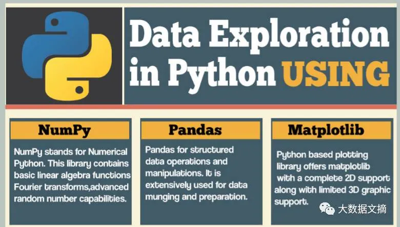 在Python中进行探索性数据分析的最佳包是NumPy, Pandas和Matplotlib。通过它们,你将学会如何在python中加载文件,转换变量,分类数据,绘图,创建样本数据集,处理缺损数据等等。这张表总结了三个库中常用的语句,这是用于探索性数据分析的最简单的小抄本之一。
