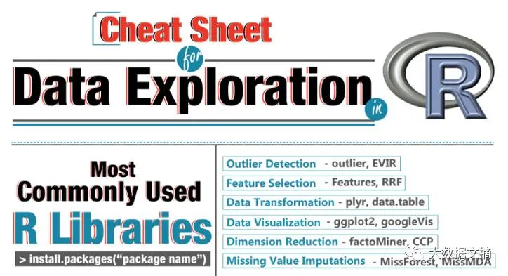 这个小抄表提供了使用R进行文本挖掘、异常值检测、集群、分类、社交网络分析、大数据、并行计算的功能。它给了你所有需要用R进行数据挖掘的函数和运算符。