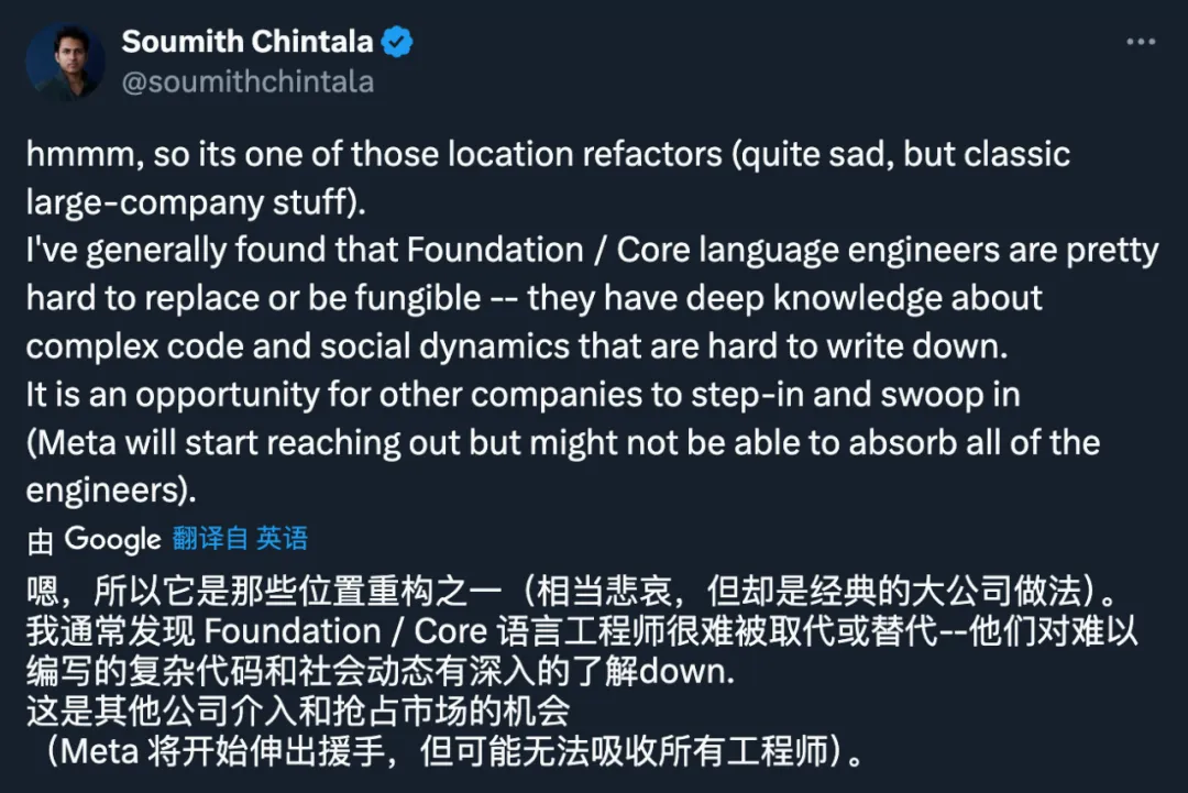 这个消息惊动了领域内的很多开发者,包括 PyTorch 创始人、Meta 杰出工程师 Soumith Chintala: