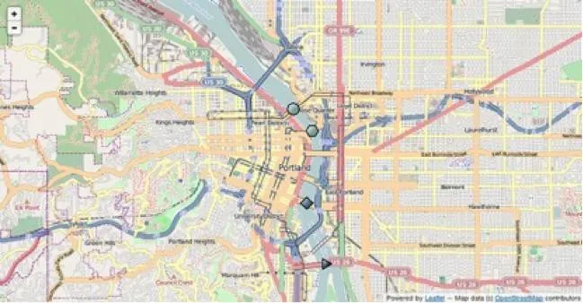 map_5.polygon_marker(location=[45.5318,-122.6745], popup='Broadway Bridge',fill_color='#769d96', num_sides=8,radius=10) #八边形标记