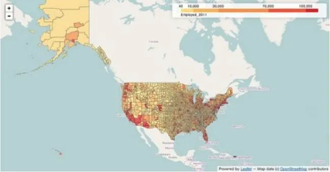 这个开源库中有许多来自OpenStreetMap、MapQuest Open、MapQuestOpen Aerial、Mapbox和Stamen的内建地图元件,而且支持使用Mapbox或Cloudmade的API密钥来定制个性化的地图元件。Folium支持GeoJSON和TopoJSON两种文件格式的叠加,也可以将数据连接到这两种文件格式的叠加层,最后可使用color-brewer配色方案创建分布图。
