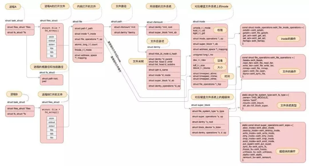 ∆文件操作在各个层的数据结构的关联