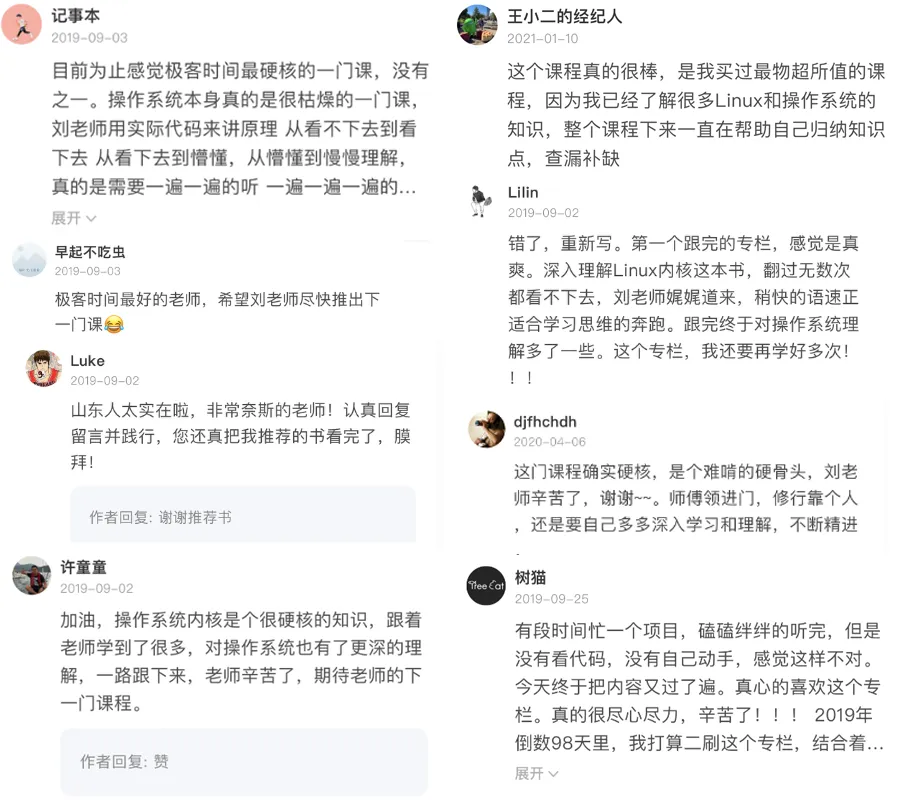这些内容都出自刘超的《趣谈 Linux 操作系统》,已经有 2.8W 人加入学习了。超哥是前网易杭州研究院云计算技术部首席架构师,有 15 年云计算领域研发及架构经验,出版过《Lucene 应用开发解密》,是位实战经验丰富的技术大佬。