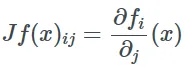 如果f:R^n→R^m 和x∈R^n,那么 Jacobian矩阵是下列函数组成的一个m×n的矩阵。