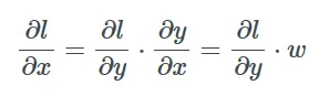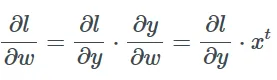 为了用梯度下降法调整w值,我们需要计算梯度∂l/∂w。这里我们可以观察到,改变y从而影响l是一个关键。