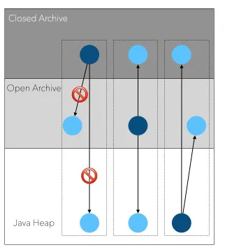 这样设计的原因是对于一些只读结构,放在Closed Archive 中可以做到对GC完全无开销。为什么只读?想象一下,假如Closed Archive中的对象A引用了heap中的对象B,那么当对象B移动时,GC需要修正A中指向B的field,这会带来GC开销。
