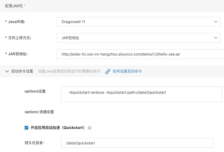 借助 Dragonwell 快速启动能力,SAE 为 Serverless Java 应用提供了一套,让应用尽可能加速启动的最佳实践,让开发者更专注于业务开发:- Java 环境 + JAR/WAR 软件包部署:集成 Dragonwell 11 ,提供加速启动环境