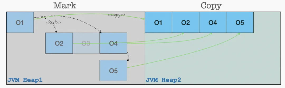 - Mark Sweep-Compact-Free: JVM 的应用有一个“内存吞噬器”的恶名,原因之一就是在进程运行起来之后,他只会向操作系统要内存从来不会归还(典型只借不还的渣男)。不过这些在现代化的分区模型算法中开始有了改善,这些算法在 FullGC 之后,可以将整理之后的内存以区域(Region)为粒度归还给操作系统,从而降低这一个进程的资源水位,以此来提升整个宿主机的资源利用率。