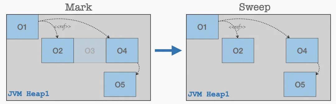 - Mark Sweep:为了减少空间成倍的浪费,其中一个策略就是在原有的区域直接对对象 Mark 后进行擦除。但由于是在原来的内存区域直接进行对象的擦除,应用进程运行久了之后,会带来很多的内存碎片,其结果是内存持续增长,但真实利用率趋低。
