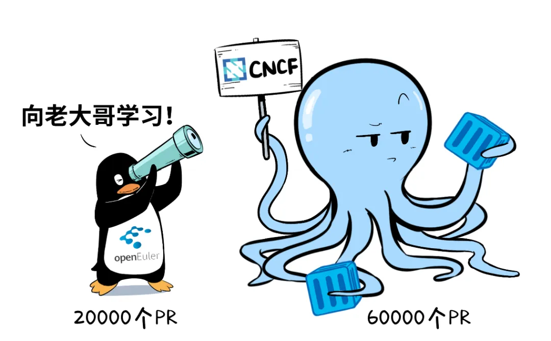 而当下最火爆的CNCF社区,PR的数量是60000个,不到一年,openEuler社区的PR数量就达到了老大哥的三分之一,这潜力,还是很令人震惊!