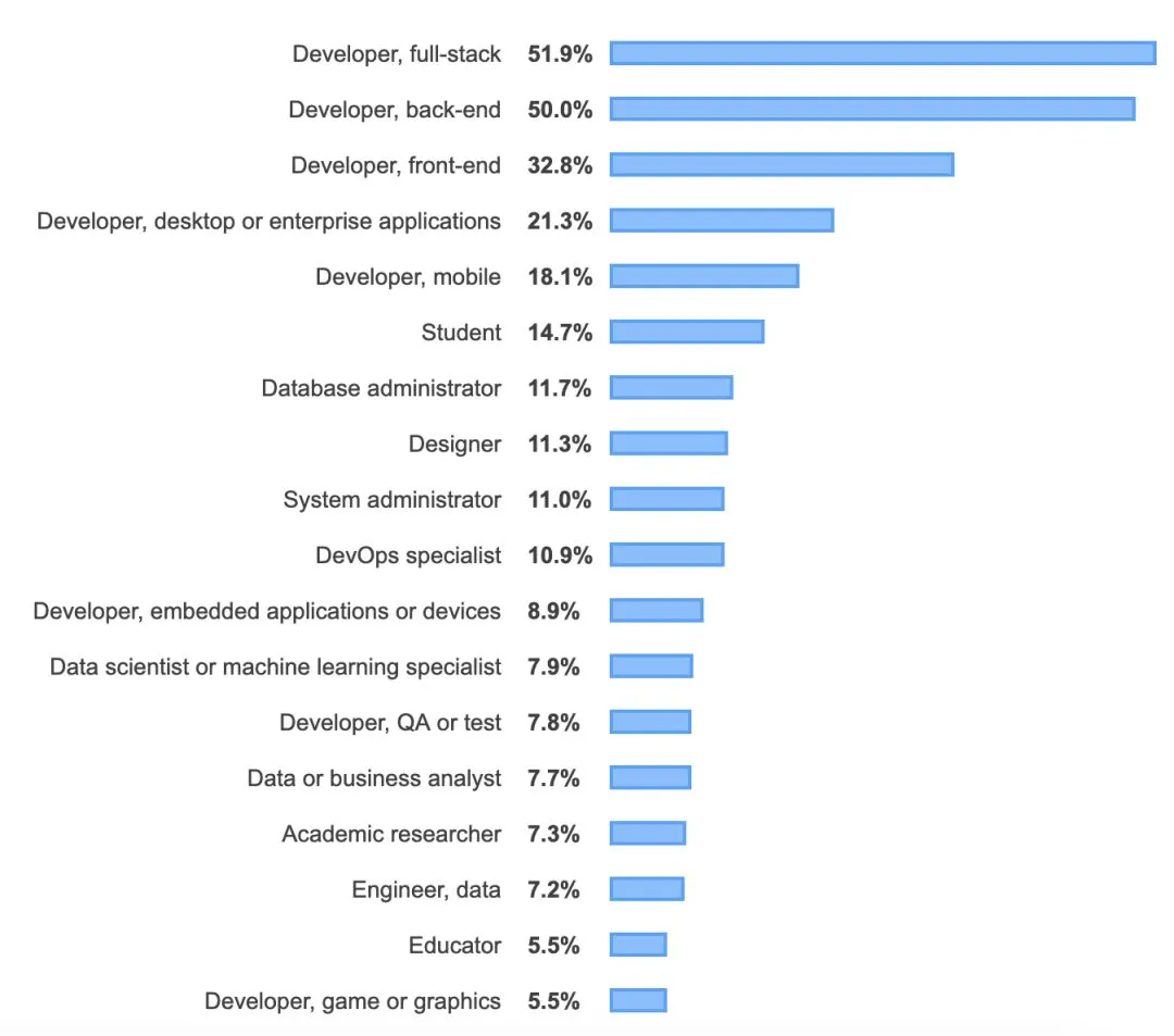 调查结果链接:https://insights.stackoverflow.com/survey/2019