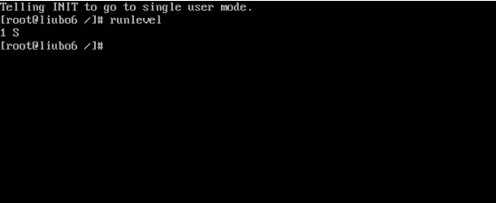 然后回车确定,启动系统,这时我们就进入了单用户模式,使用runlever命令查看有如下输出: