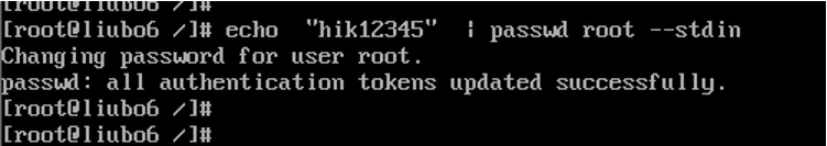 例如我需要修改root用户密码为DH12345,使用命令 echo “DH12345” | passwd root --stdin 就将root用户密码修改成功了。
