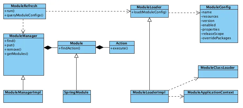 AbstractModuleRefreshScheduler:入口类,负责定期扫描本地和内存中的模块是否发生变更,如果变更,则更新模块。