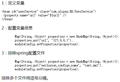 通过moduleConfig的Properties属性可以设置Spring bean变量的配置信息。