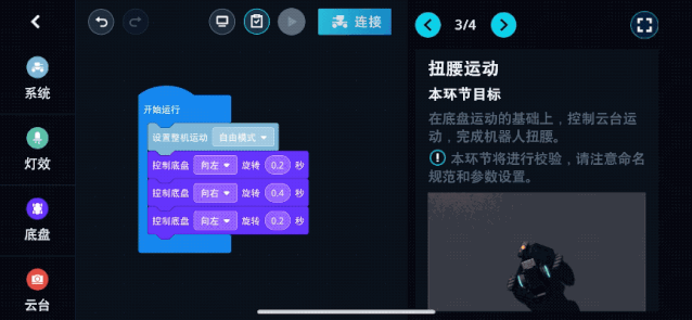 我父亲相信教育是应该和日常生活融为一体,不管教的是拉丁文还是数学或历史。开始学习拉丁文的时候,学生要在城市里游走观察,抄写博物馆和雕塑里出现的拉丁碑文;研习数学的时候,学生们需要去收集匈牙利当地的小麦产量、做计算、画图表。所以我们根本没有浪费时间去死记硬背公式,而是自己研究推导出了他们。还有比这更好的方式来培养科学家么?大疆小车当然不可能代替传统的课堂和老师,让孩子自学成才。但是这种问题导向、鼓励主动获取知识和快速激励的思路,提供了教育的更多可能。不必苦读教材,甚至无需从编程语言基础语法学起,「技术」被弱化了,从而带来更有条理的「思维方式」。初学乍道后,就可以进入「实验室 > 大师之路」这个新天地,开启闯关训练了。如果说编程卡带来的是对基础单一拳法的理解,大师之路则是教授一套套「组合拳」,且大多都出自 RoboMaster 机甲大师赛五个赛季积累的实战招式。过了新手引导,之后的漂移甩尾、视觉标签跟随、巡线出击等,每一个项目式教程都涉及了多类知识点,难度递增,带你渐入佳境,完善知识网络和技能体系。编程卡是「知其然」,大师之路更讲究「知其所以然」。不同于死记硬背、填鸭式的课程,大疆小车「实验室」的课程更具有开放性和创造性。通过对应用场景、任务流程、知识点的剖析,循序渐进,将一个项目分成了不同环节。以大师之路中的「扭腰反击」为例,这套动作以 2016 年 RoboMaster 机甲大师赛中华南理工大学「华南虎战队」的「战术扭腰躲避敌方弹道」技术为原型,目的是将机器人的底盘和云台分别向反方向旋转,从而降低机器人受到攻击的概率。看似复杂,实际在大师之路中已经被分解为了「底盘运动」、「扭腰运动」两个环节,每个环节同样对目标、步骤、所需知识点、编程引导、注意要点、实现效果等多方面进行了翔实描述,其中不乏生动形象的抽象结构示意图、流程图、动图等。如同每张编程卡有「小思考」,大师之路的每一课同样有「奖励关卡」作为课后拓展,将引导把学会的「组合拳」融入到实际对战场景,而非局限于代码片段的执行。值得一提的是,随着课程的深入,覆盖知识面更广,你或许还能将在大学四年都没搞明白的知识融会贯通。比如「使用 PID 控制实现自动跟随」,对于自动化和电子等专业的大学生来说,这个概念不陌生,但真正掌握且应用并不容易。在「视觉标签跟随」项目中,你能通过图示来学习 P 控制、PI 控制、PD 控制、PID 控制分别是什么,也能通过提高云台瞄准精度和优化跟随效果直接调试反馈控制。寓教于乐,鼓励学生脱离教材、课本的限制,主动去获取更多科学知识,无疑是更高效的学习方式。只会 Scratch 当然是不够的,事实上《RoboMaster》App 中还能够进行 Python 编译,实现更多复杂操作。Python 是一种易上手的脚本语言,语法简洁清晰,拥有丰富且强大的类库,应用范围广,既适合新手学习,也适合其他编程语言的学习者快速上手。在「实验室 > 我的程序」中,Scratch 与 Python 可随时点击右上角 <|> 符号切换,便于对照着每个模块的效果理解代码;也可以通过 Python 编辑器直接写入。不过,Python 学习难度远大于 Scratch,语言的学习更多需要自行摸索。除了自己敲代码,分享或使用他人的程序也是大疆小车的扩展玩法之一。大疆社区机甲大师讨论区中,拥有丰富的开源例程可供学习,包括让大疆小车打地鼠、成为闹钟、识别于谦郭德纲等。大疆社区用户 bakedkids 设计的「打地鼠」. 大疆小车共有 6 个击打检测传感器,当传感器上亮灯时敲打相应装甲,若敲打正确云台将「点头示意」比如,搭个机械爪,加个写字机械臂,用罗技无线键鼠连接手机控制大疆小车,改造成消毒机器人等。大疆社区用户 灰灰机呦 为大疆小车安上了机械爪来抓取物体大疆小车有个特殊的「设定」,能在物理世界中根据伤害来结算系统计算攻击值,并实时显示生命值,由此奠定了「对战」的基础,这可能也是唯一一款将电子竞技的乐趣与理论知识学习合二为一的机器人。在多人竞技之上,就是机器人大赛。大疆的「RoboMaster 大学生机器人大赛」连续举办 5 年,现已成为全球规模最大的机器人赛事之一。但年龄不符合条件,没有合适的队友组团往往会成为一道坎,让不少机器人爱好者无缘参与。而就在前几天,我们获知了一个消息:大疆又为普通用户开辟了一片土壤,将举办「机甲大师全民挑战赛」。不限制报名年龄、专业背景,任何希望体验机器人赛事的用户都能参加。既可以拉上 2 位好友或家人,组成一个战队参赛,也可以让大疆为你匹配合适的队友。门槛低,规则也很简单,与王者荣耀类似,全民挑战赛直接采用了大疆小车的征服模式:选手将在一个 6 米 × 9 米的场地中,操作机器人扫描「视觉标签」,占领据点。率先占领 4 个据点的队伍,将获得比赛胜利。在这样一场比赛中,选手需要互相配合、掩护、设计战术和自定义技能。如果选手脑洞够大,他们就可以把小车变成「间谍」,释放程序技能,将自己的车灯颜色通过编程伪装成对方战队,从而偷偷拿下据点。大疆透露,这一全新的机器人赛事将在 2020 年在北京、上海、广州、深圳率先落地,再推广到南京、杭州、成都等众多城市。和赛事相结合的,是一项「机甲大师俱乐部」计划。大疆官方授权的「机甲大师俱乐部」也将在近期