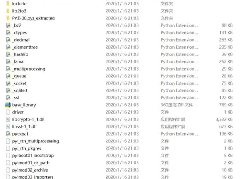 下图为 EXE 文件的解包结果(采用 PyInstaller Extractor):