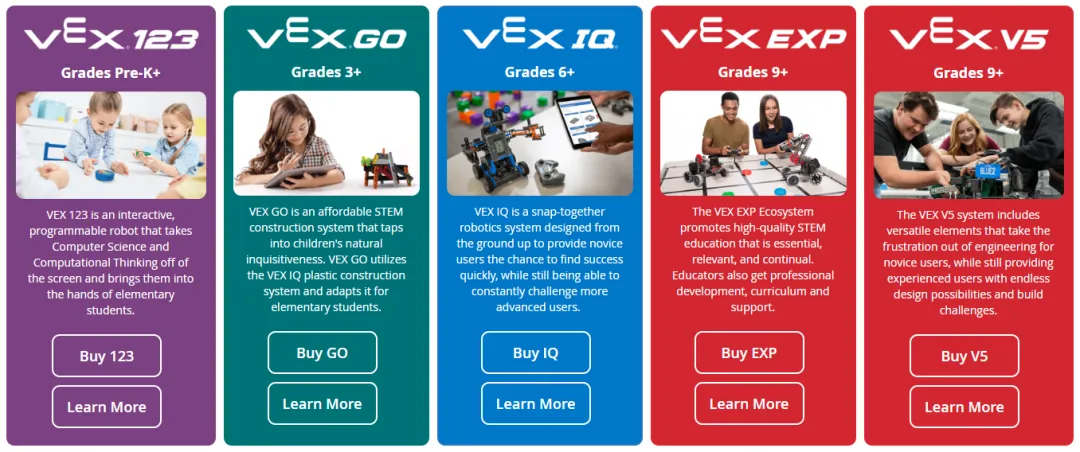 △ VEX为不同年龄段孩子提供的机器人产品