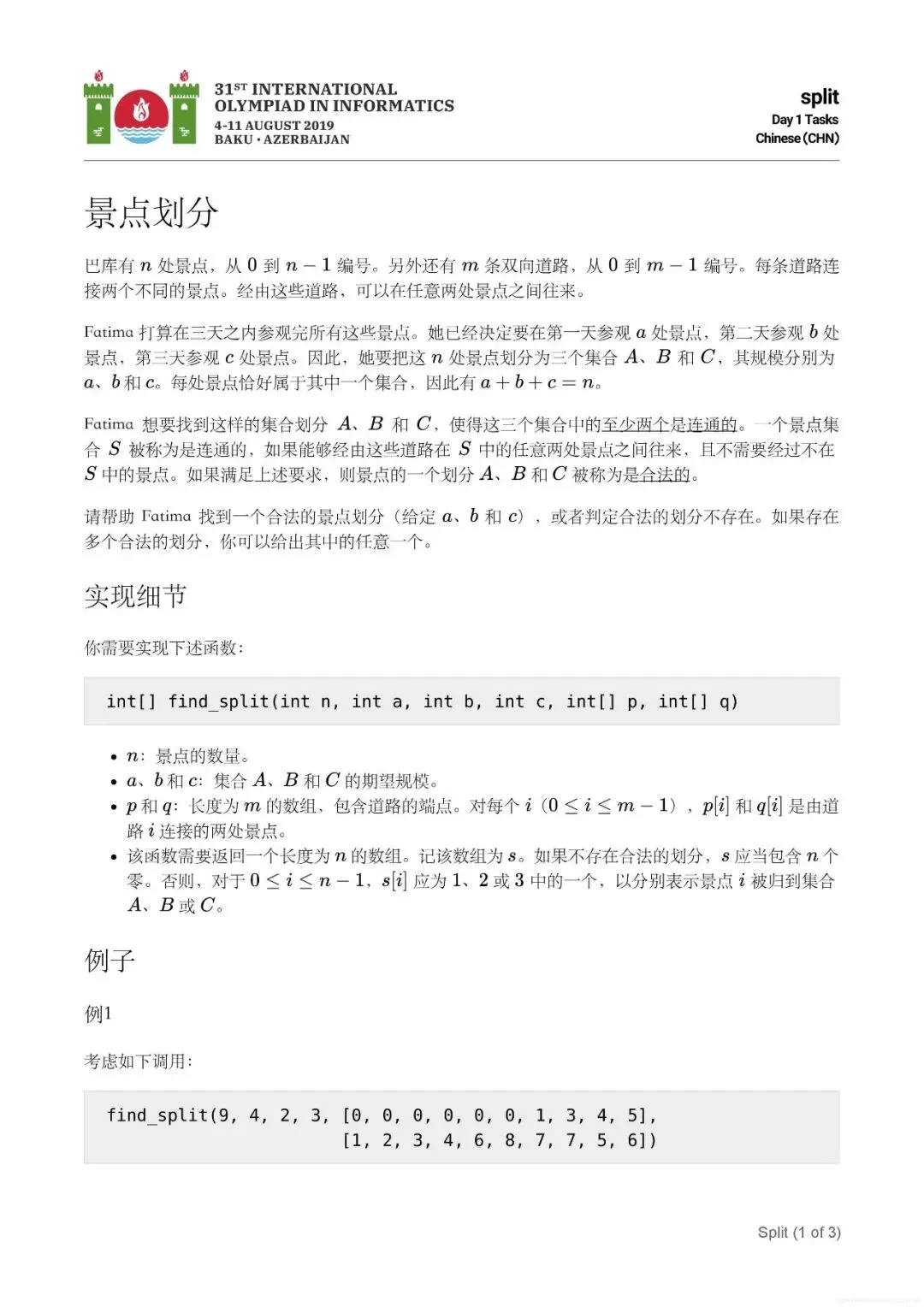 2019年国际信息学奥林匹克竞赛真题-景点划分