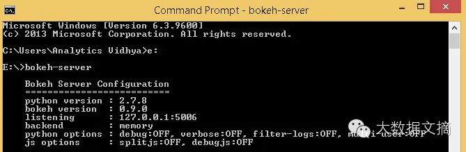 开始在Bokeh服务器上绘图之前,我先运行了“bokeh-server”指令对其进行初始化,然后再运行用于可视化的相关指令。