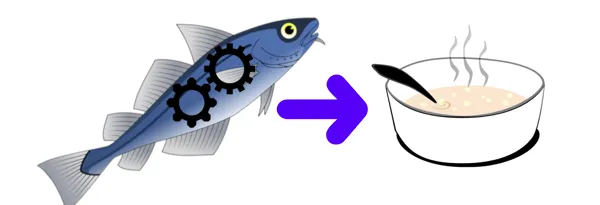 举个例子,我们现有的食谱书包含了炸鸡的烹饪过程。如果想添加煎鱼的过程,也不需要重新编写,只需要指导读者用炸鸡的方式煎鱼,但要使用更高的温度,并且将配料更早的剔除。