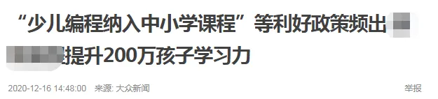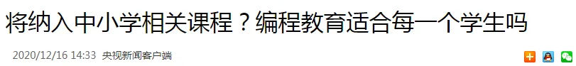 相关新闻报道纷纷以《编程教育纳入中小学课程》为题,吸引家长们的关注和讨论: