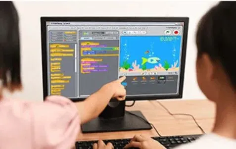 一所小学四年级的课堂上,大部分学生已经可以使用Scratch图形化编程语言设计出一定的情境故事或游戏并流畅运行。