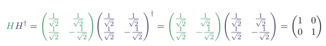 我们可以通过计算矩阵的共轭转置(H†)是否等于矩阵的逆(H-1)来确定H的幺正性: