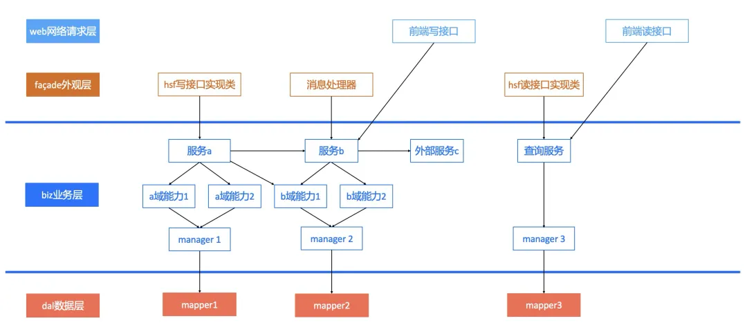 facade层的hsf实现类只做简单的参数校验和转化,不要写业务逻辑。