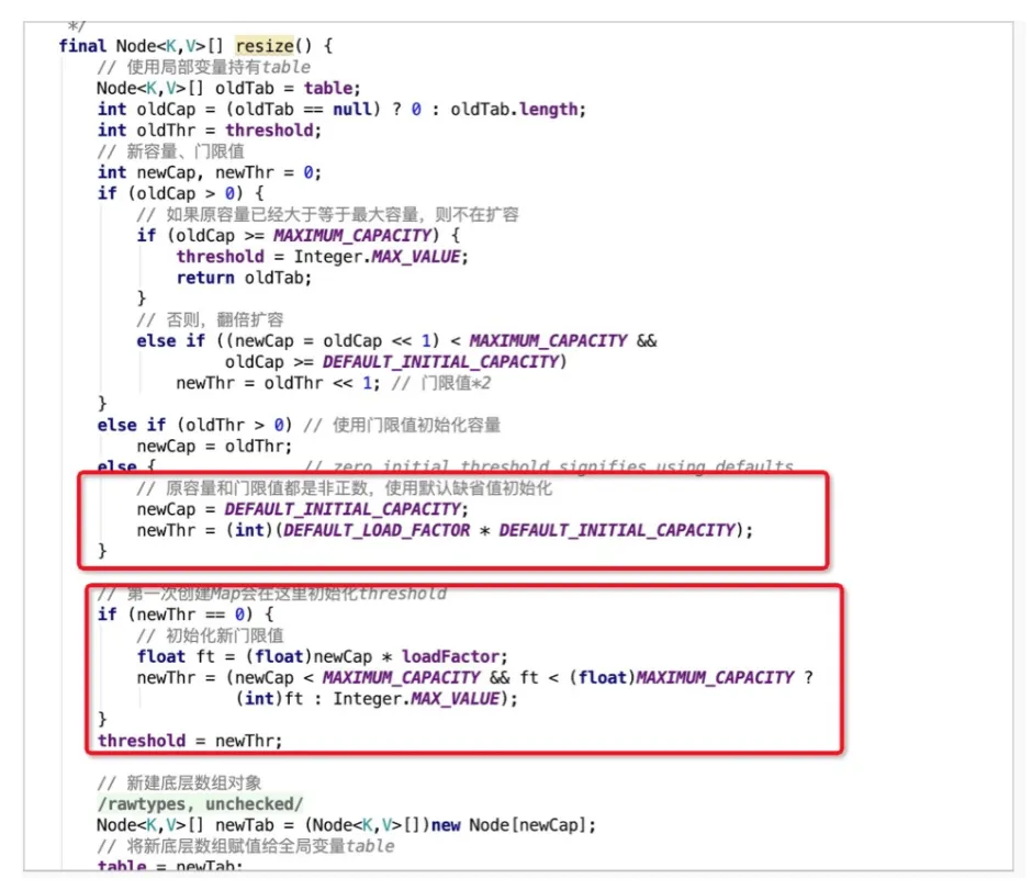 通过位运算<<1进行容量扩充,即扩容1倍,同时新的阈值newThr也扩容为老阈值的1倍。